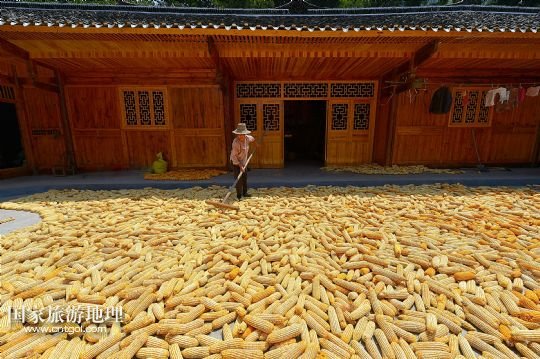 國家旅游地理 湖北恩施8月22日訊 8月22日,湖北省宣恩縣水田壩村二組農(nóng)民侯慶云在吊腳樓前晾曬玉米。初秋時(shí)節(jié),湖北省恩施土家族苗族自治州宣恩縣農(nóng)民搶抓時(shí)節(jié),對(duì)玉米等農(nóng)作物進(jìn)行收獲晾曬,山鄉(xiāng)家家戶戶忙“曬秋”,到處是一派豐收景象。 /新華社發(fā)(宋文 攝)