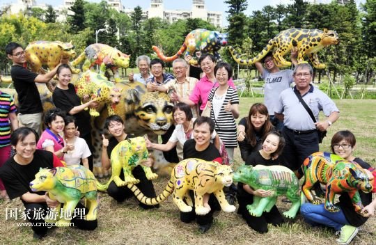 國家旅游地理 臺灣臺北9月18日訊 9月17日,人們在臺北市青年公園的云豹彩繪活動上合影。當日,臺北市青年公園舉行“記憶與重生——臺北市青年公園公共藝術計劃”活動,讓市民們彩繪出自己心中已經滅絕的臺灣云豹的模樣,以此呼吁環(huán)保。 /新華社發(fā)(吳景騰 攝)