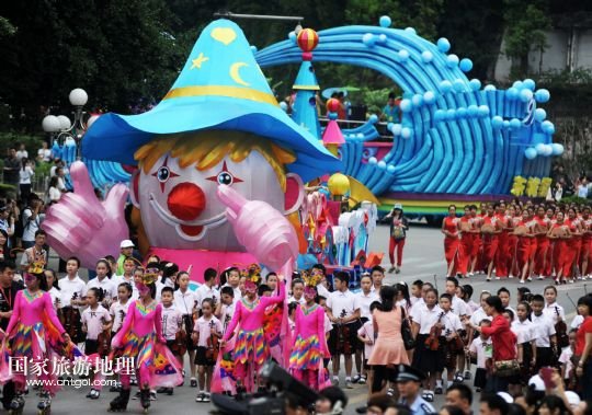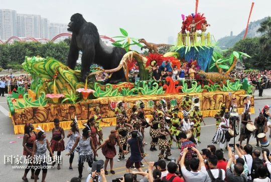 國家旅游地理 廣西柳州10月1日訊 9月30日,一輛巡游的花車經(jīng)過廣西柳州市駕鶴路。 當(dāng)日,2013中國柳州國際水上狂歡節(jié)以一場(chǎng)“狂歡大巡游”拉開帷幕。10輛造型各異的花車和國內(nèi)外各具特色的演藝團(tuán)體為市民和游客帶來一場(chǎng)歡樂盛宴。