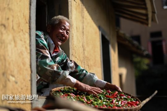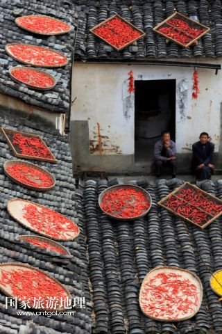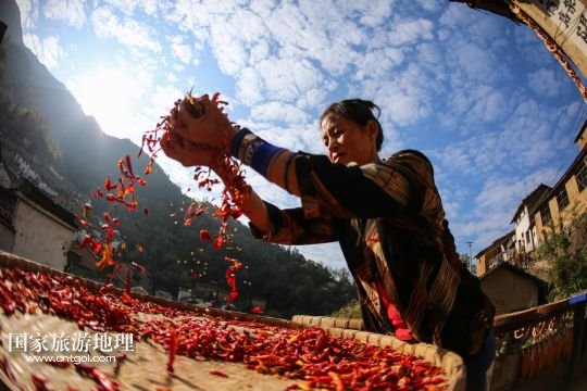 國(guó)家旅游地理 安徽黃山11月11日訊 11月10日,黃山市歙縣霞坑鎮(zhèn)湖山村住戶的屋頂晾曬著各種農(nóng)作物。秋末冬初,安徽省皖南黃山市歙縣鄉(xiāng)村農(nóng)戶種植的玉米、南瓜、辣椒等農(nóng)作物陸續(xù)收獲,古村中房前屋后、庭院屋頂曬滿果實(shí),構(gòu)成一幅幅美麗的“曬秋圖”。 /新華社發(fā)(施廣德 攝)