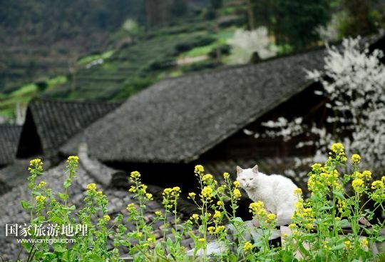 慶陽古街花香四溢,一只大白貓在樓頂獨享風(fēng)景(3月27日攝)。
