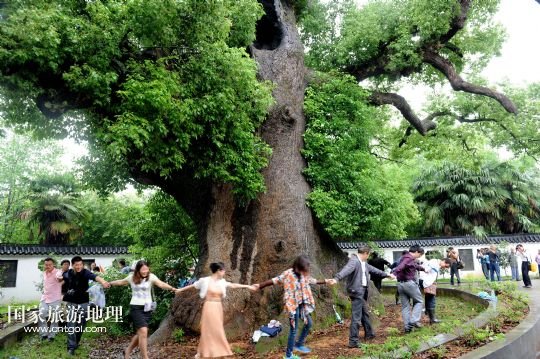 國(guó)家旅游地理 江西上饒5月18日訊 5月17日,游客在江西省德興市??阪?zhèn)??诖迩旯耪僚酝嫠!=魇〉屡d市??阪?zhèn)??诖逵幸豢?800多歲“高齡”的巨型古樟樹,歷史上曾遭受過多次雷擊、火災(zāi)等,其中最近的一次發(fā)生在2010年10月1日,由于村內(nèi)孩童進(jìn)入可容納幾十人的樹洞內(nèi)玩耍,不慎引發(fā)火災(zāi),致使大火從樹洞里燒起,讓這棵千年古樟幾近滅頂。此后,當(dāng)?shù)卮迕褡园l(fā)捐款近6萬(wàn)元,請(qǐng)來(lái)有關(guān)專家救治。經(jīng)過近4年的精心護(hù)救,如今這棵千年古樟再度逢春,枝繁葉茂,吸引了各方游客前來(lái)觀賞。 /新華社發(fā)(卓忠偉 攝)