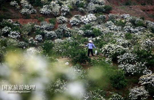 國家旅游地理 江西九江5月24日訊 5月24日,游客在黃梔子種植基地采摘梔子花。小滿時節(jié),在位于鄱陽湖畔的江西省九江市都昌縣土塘鎮(zhèn)潭湖村的坡嶺上,春輝黃梔子專業(yè)合作社6個種植基地的兩千多畝黃梔子全面進入盛花期,種植園內(nèi)芳香四溢。黃梔子是傳統(tǒng)中藥材,花朵可觀賞、食用,果實可用于醫(yī)藥、染色、化妝品等領(lǐng)域。成立于2007年的都昌春輝黃梔子農(nóng)民專業(yè)合作社近年來致力于實施科技推廣、標準化種植和專業(yè)化經(jīng)營黃梔子,將黃梔子從“飄香”經(jīng)濟延伸到“染色”“藥用”深加工,進軍省內(nèi)外市場。 /新華社發(fā)(傅建斌 攝)