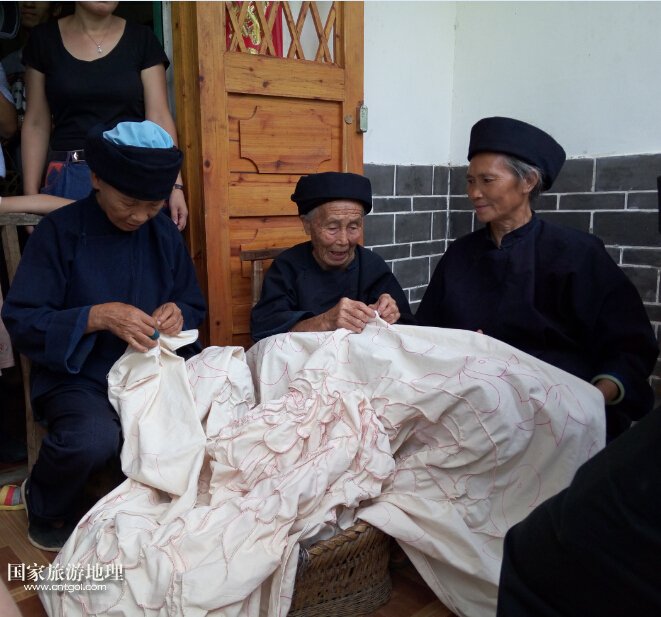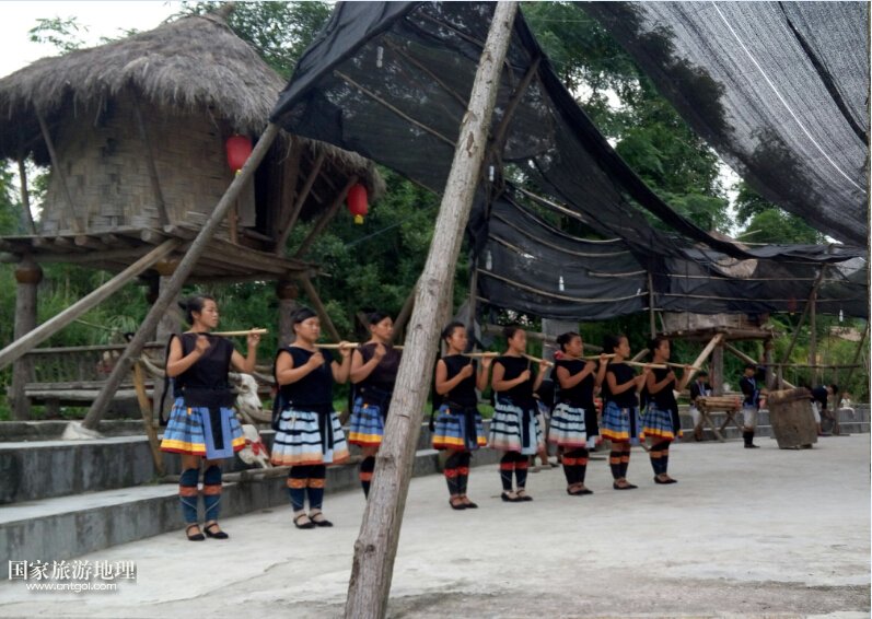 這是黔南荔波縣瑤寨姑娘在表演舞蹈。荔波瑤山白褲瑤是一個(gè)歷史悠久的古老民族,是一支長期深居高山密林,過著刀耕火種,自給自足的封閉式狩獵民族,至今仍保存著母系氏族社會(huì)向父系氏族社會(huì)過渡的遠(yuǎn)古遺風(fēng),因其民族文化保存最完整而被聯(lián)合國科教文衛(wèi)組織賜予“人類文明的活化石”之稱。又因其崇拜太陽神,信奉百神靈,圖騰與遠(yuǎn)在大洋彼岸的印第安人極為相似而被外界稱為“東方印第安人”。