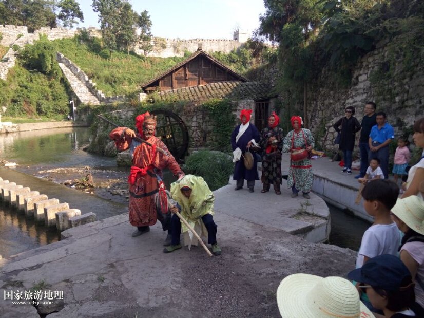 這是福泉民間老藝人在表演福泉陽戲《二郎鎖孽龍》。福泉陽戲,所謂陽戲是指唱給活著的人聽的;也有陰戲,便是唱給死去的人聽的。陽戲主要有兩種功能,一種是娛樂,另一種便是還愿納吉,意思是之前向天神祈求的事情實(shí)現(xiàn)了,于是便唱起陽戲向天神還愿,同時(shí)也向天神祈求吉祥。福泉老藝人在表演陽戲的時(shí)候,雖然言語不通,但依然可以感受到陽戲所具有的獨(dú)特魅力,以及陽戲中所蘊(yùn)含的民俗文化。