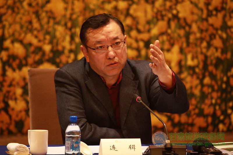 圖為連輯部長出席會議并講話。甘肅省旅游局 張林濤攝