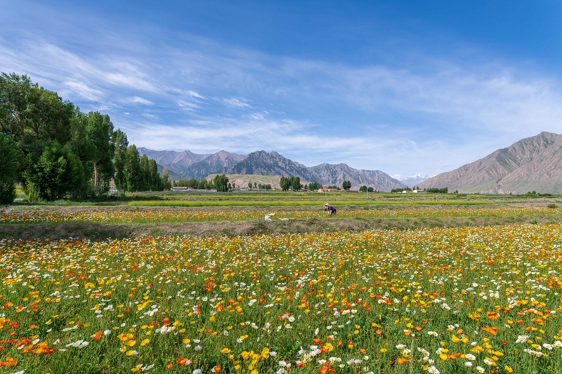 時值盛夏,地處祁連山北麓高海拔山區(qū)的甘肅省高臺縣新壩鎮(zhèn)紅沙河村種植的虞美人繽紛綻放,形成花海景觀。近年來,高臺縣新壩鎮(zhèn)將花卉蔬菜制種作為特色產(chǎn)業(yè)來抓,積極引導農(nóng)戶規(guī)?;⒓谢N植,成為當?shù)剞r(nóng)業(yè)增效、農(nóng)民增收的支柱產(chǎn)業(yè)之一。